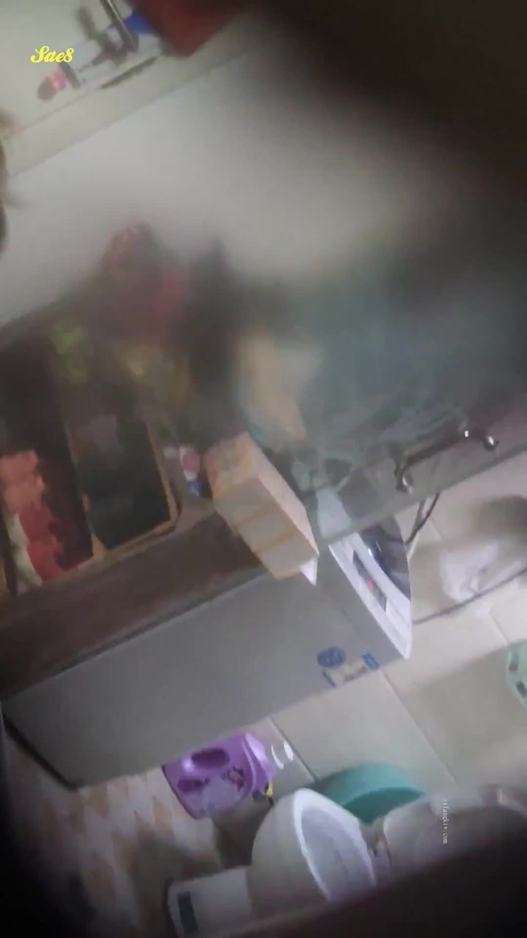爬了八层楼浴室窗外偷拍邻居洗澡